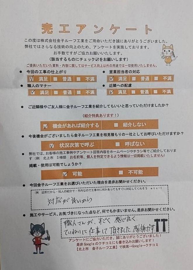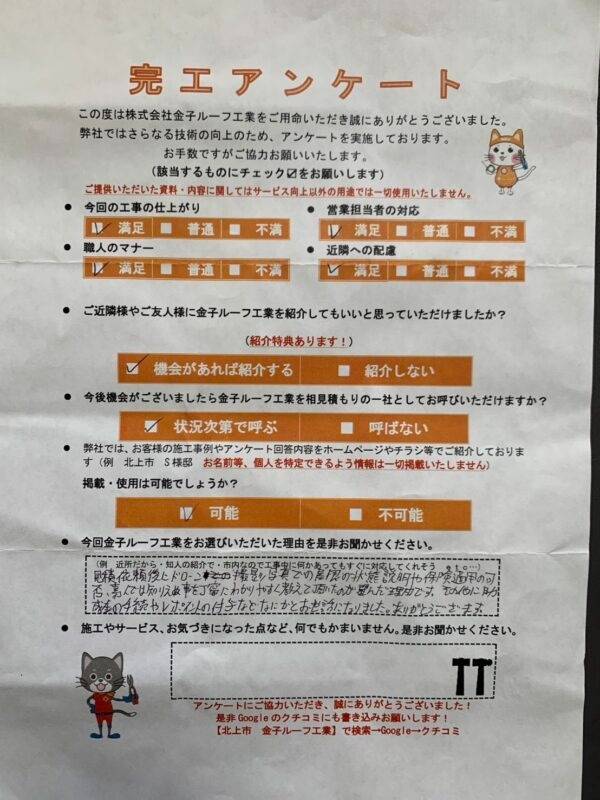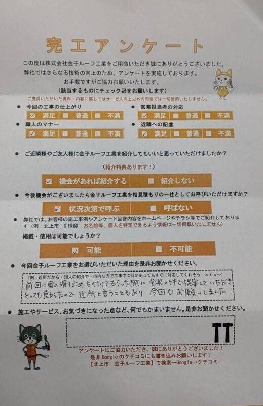 【金子ルーフ工業をお選びいただいた理由を是非お聞かせください】対応が良いから。